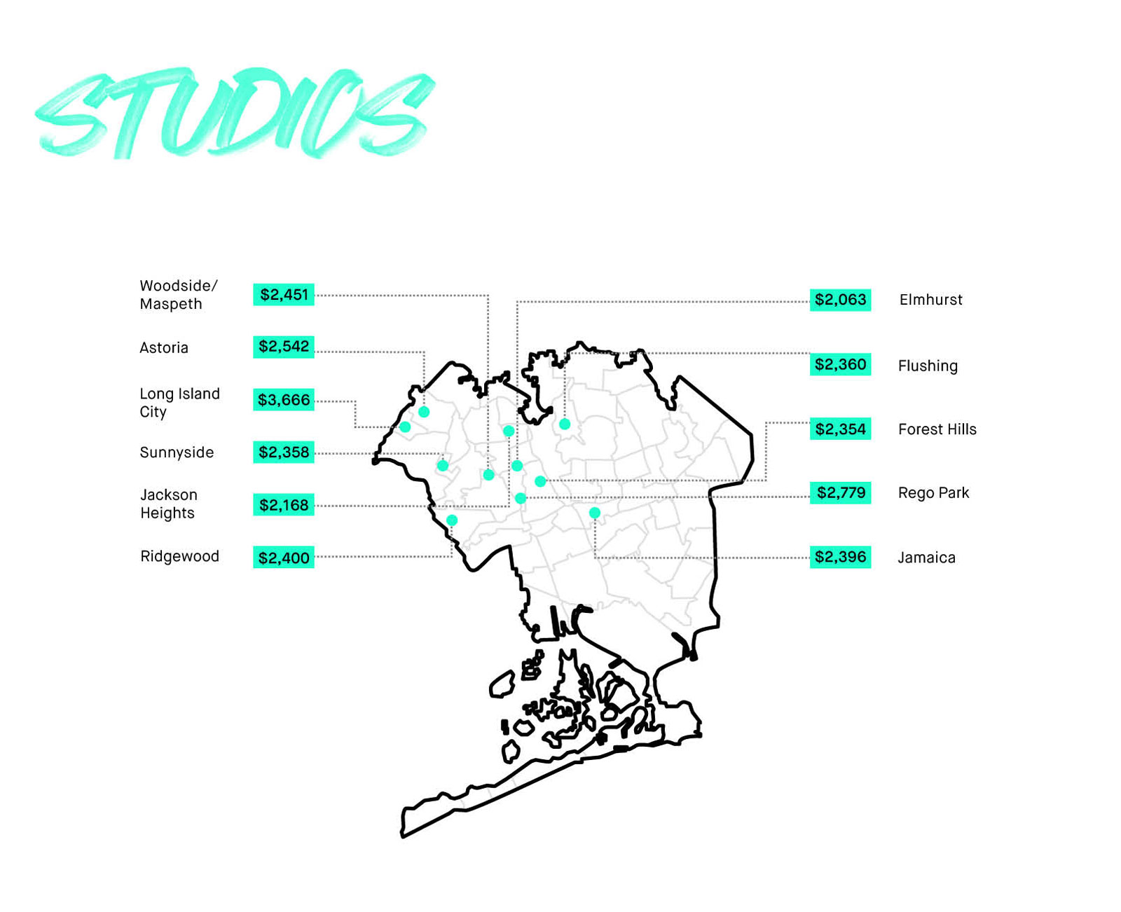 | Studios | Long Island City $3,666 | Elmhurst $2,063 |
